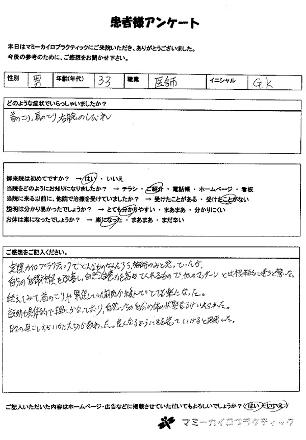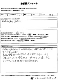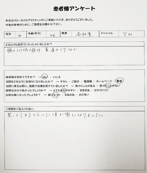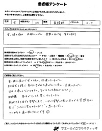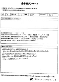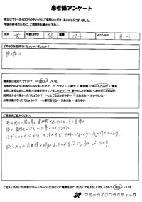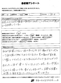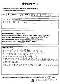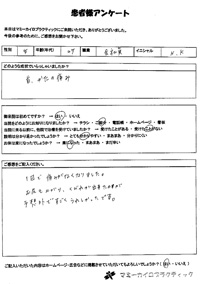 先生に施術して頂き、実際に良くなった事を感じて本当よかったです。