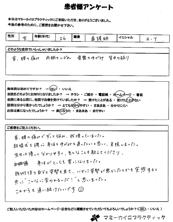 結婚式を機に身体のゆがみを直したいと思い、来院しました。